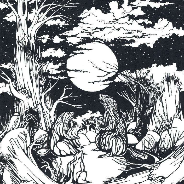 My drawings are made with Sharpie ultra fine and fine point permanent markers, drawn into airbrushed Higgins or Bombay inks. Paper size varies for each drawing, as I have used very large illustration board on down to various sizes of Bristol board paper listed for each drawing.